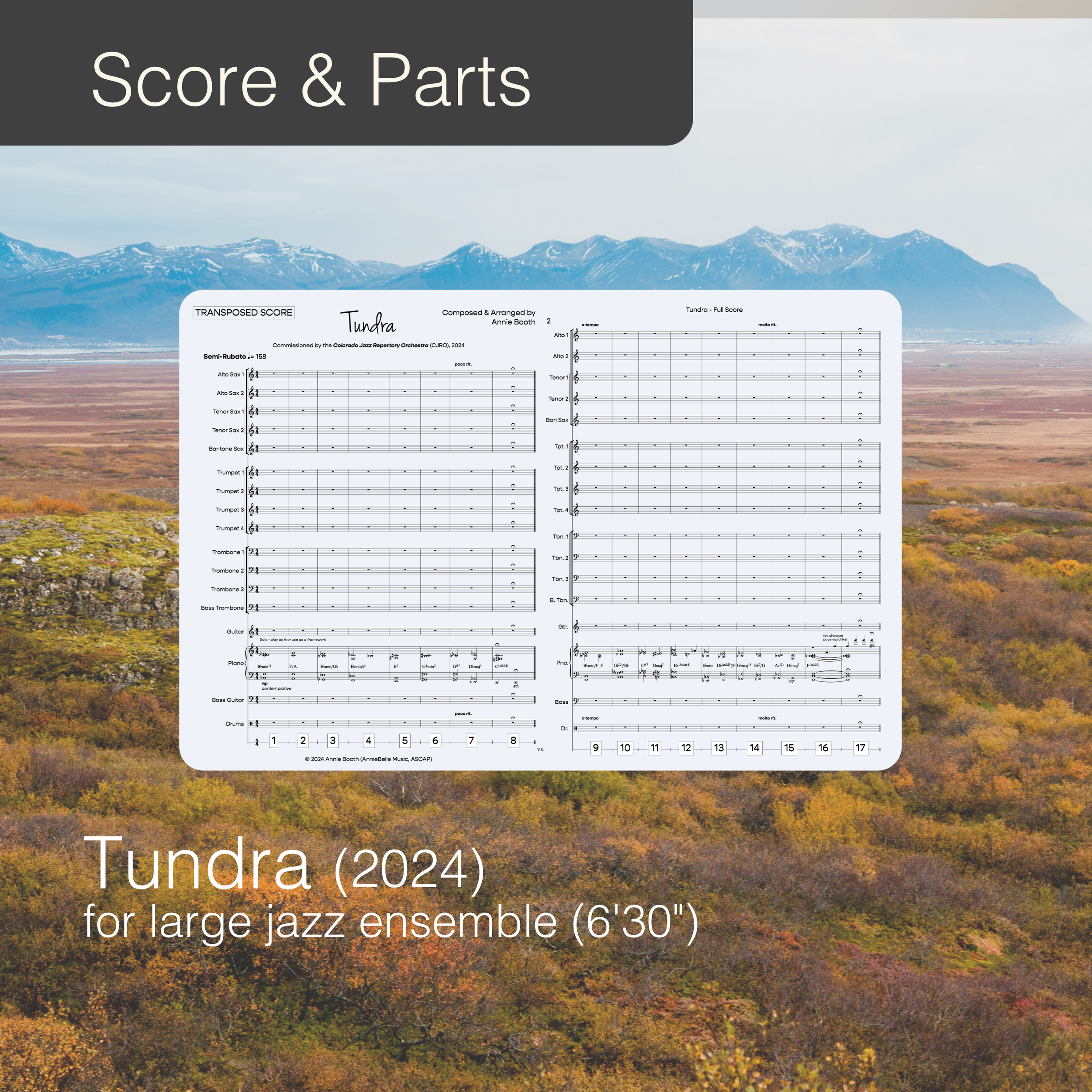 Arrangement of Irving Berlin’s “White Christmas” for large jazz ensemble. Standard instrumentation plus optional vibraphone, trumpet 5, and additional bass trombone parts. Solos offered for alto sax, trombone, and bass.